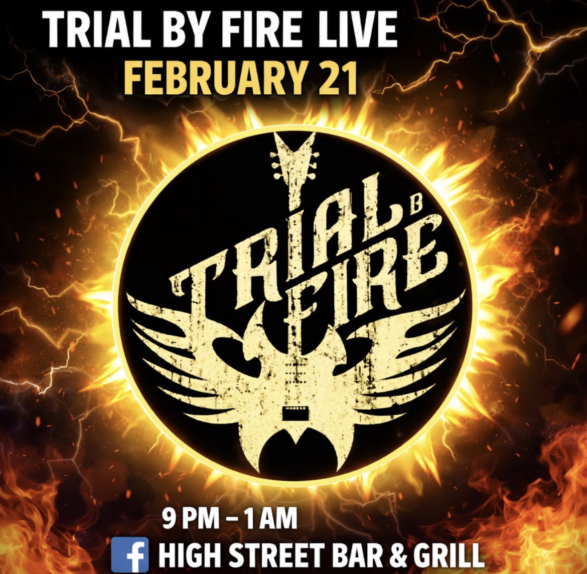 TRIAL BY FIRE LIVE Friday, February 21 9 PM – 1 AM High Street Bar & Grill Turn the volume up and your weekend loose — Trial by Fire is hitting the stage at High Street for a full night of live music, cold drinks, and good trouble. ...