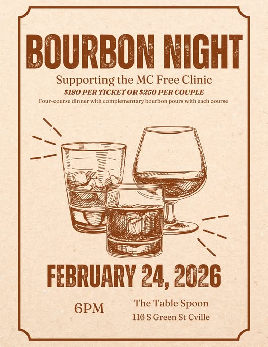 Join the Montgomery County Free Clinic and the Juniper Spoon for Bourbon Night, where you can warm up on a cold winter evening and support our mission to promote quality healthcare access for Montgomery County residents who face barriers to wellness. Each Bourbon Night ticket...