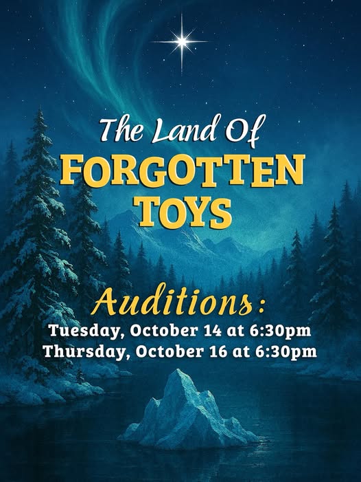Come audition for our winter show, The Land of Forgotten Toys! Tuesday, October 14 at 6:30pm or Thursday, October 16 at 6:30pm See our website for details and character descriptions: https://www.sugarcreekplayers.org/.../land-of-forgotten.../